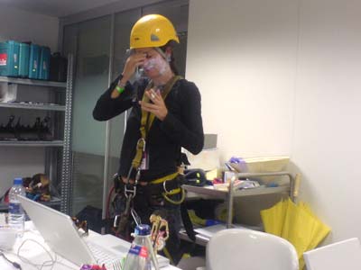 Some people climb up mountains like the K2, the Kilimanjaro or the Mount Everest. Steffi needs a bigger challenge: dismanteling the Expo. This adventure is one of the highest and most recognized challenges in the environmental design business. No wonder that she’s equipped with the latest safety belts. Serious: the dismantling job is a hell of a job. KEEP UP THE SPIRIT! We’re with you.