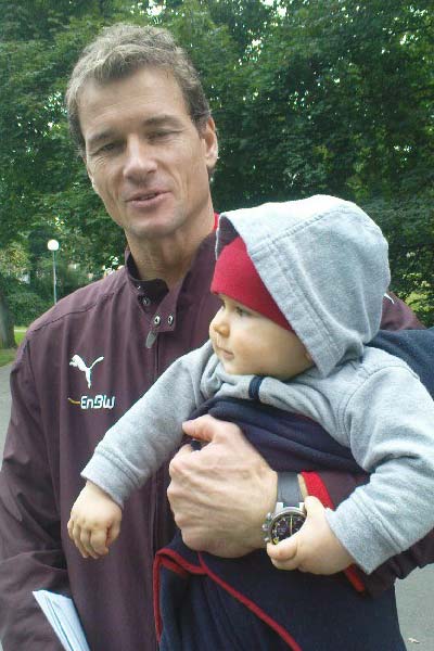 Here we go! That’s what happens if you are on a boring stroll through the park: little Oscar (Davids & Elenas son) meets Stuttgart’s goalkeeper Jens Lehmann. Oscar and Jens are now close buddies and Jens promised Oscar to invite him to the next soccer match… but Oscar obviously was rather interested in Jens’ watch :)