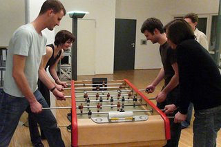Every day a group of soccer maniacs exercise their dribbling techniques and power shots. Right here in the studio. They are loud, scream, yell and everyone else is pissed off. But they don’t care. Anyway – game on!
